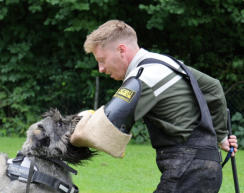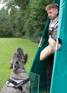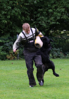 Gebrauchshundesport Fährtenarbeit, Unterordnung und Schutzdienst - das sind die drei Sparten des Gebrauchshundesports. Es ist eine sehr abwechslungsreiche und anspruchsvolle Hundesportart und fördert die Hunde in sehr vielen Bereichen.Wichtig im Gebrauchshundesport ist die Teamarbeit! In jedem Training werden die einzelnen Trainingsinhalte vorher besprochen. Jeder in der Gruppe schlüpft in die Rolle des Trainers und übernimmt somit die Verantwortung der Ausbildung der anderen Teammitglieder! Die Ausbilderin ist somit ein ganz normales Teammitglied und ist zugleich Ansprechpartnerin bei Fragen in der Ausbildung. Dieses Konzept hat den Vorteil des doppelten Lerneffekts, denn man schlüpft einmal in die Rolle des Trainierenden und einmal in die des Trainers.Wir verwenden in der Ausbildung nicht nur den positiven Verstärker sondern auch den Negativ-Marker. Er zeigt dem Hund an, dass sein gezeigtes Verhalten falsch war und er keine Belohnung bekommt, aber eine neue Chance erhält, das richtige Verhalten zu zeigen!In jedem Training sind immer Koordinations- und Propriozeptionsübungen enthalten. Regelmäßig findet auch ein spezifisches Sprungtraining statt. Desweiteren dienen Videoanalysen der Trainingskontrolle bzw. Fehleranalyse.Spezifische Hausaufgaben (individuell auf das entspr. Team ausgerichtet) dienen derTrainingsergänzung. Im Schutzdienst werden die meisten Gehorsamsübungen am Anfang ohne Helfer geübt, damit der Hund sich in einer niedrigeren Motivationslage befindet. Hier steht die Impulskontrolle im Vordergrund.Auch hier steht die Teamarbeit im Vordergrund. Soweit wie möglich soll jeder im Team alle Aufgaben in der Ausbildung ausführen können.