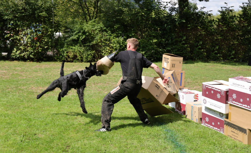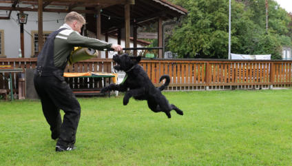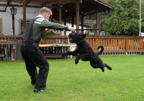 Gebrauchshundesport Fährtenarbeit, Unterordnung und Schutzdienst - das sind die drei Sparten des Gebrauchshundesports. Es ist eine sehr abwechslungsreiche und anspruchsvolle Hundesportart und fördert die Hunde in sehr vielen Bereichen.Wichtig im Gebrauchshundesport ist die Teamarbeit! In jedem Training werden die einzelnen Trainingsinhalte vorher besprochen. Jeder in der Gruppe schlüpft in die Rolle des Trainers und übernimmt somit die Verantwortung der Ausbildung der anderen Teammitglieder! Die Ausbilderin ist somit ein ganz normales Teammitglied und ist zugleich Ansprechpartnerin bei Fragen in der Ausbildung. Dieses Konzept hat den Vorteil des doppelten Lerneffekts, denn man schlüpft einmal in die Rolle des Trainierenden und einmal in die des Trainers.Wir verwenden in der Ausbildung nicht nur den positiven Verstärker sondern auch den Negativ-Marker. Er zeigt dem Hund an, dass sein gezeigtes Verhalten falsch war und er keine Belohnung bekommt, aber eine neue Chance erhält, das richtige Verhalten zu zeigen!In jedem Training sind immer Koordinations- und Propriozeptionsübungen enthalten. Regelmäßig findet auch ein spezifisches Sprungtraining statt. Desweiteren dienen Videoanalysen der Trainingskontrolle bzw. Fehleranalyse.Spezifische Hausaufgaben (individuell auf das entspr. Team ausgerichtet) dienen derTrainingsergänzung. Im Schutzdienst werden die meisten Gehorsamsübungen am Anfang ohne Helfer geübt, damit der Hund sich in einer niedrigeren Motivationslage befindet. Hier steht die Impulskontrolle im Vordergrund.Auch hier steht die Teamarbeit im Vordergrund. Soweit wie möglich soll jeder im Team alle Aufgaben in der Ausbildung ausführen können.
